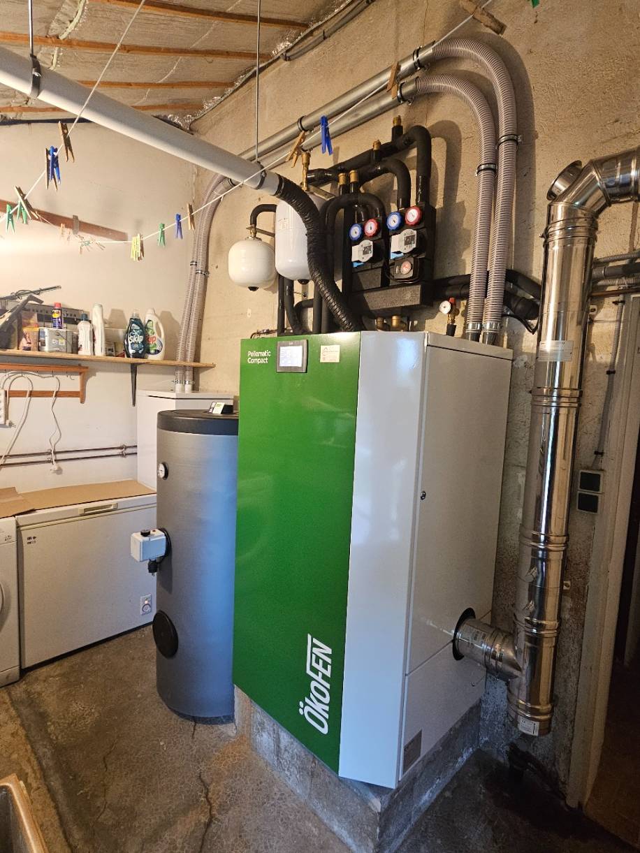 Grâce à cette chaudière à granulés ÖKOFEN Pellematic Compact 14 kW, le logement bénéficie désormais d’un chauffage performant, plus économique et respectueux de l’environnement. Le mini silo compact et les sondes de régulation assurent un fonctionnement optimisé, tandis que l’application "Mypelletronic" facilite le pilotage du système au quotidien.