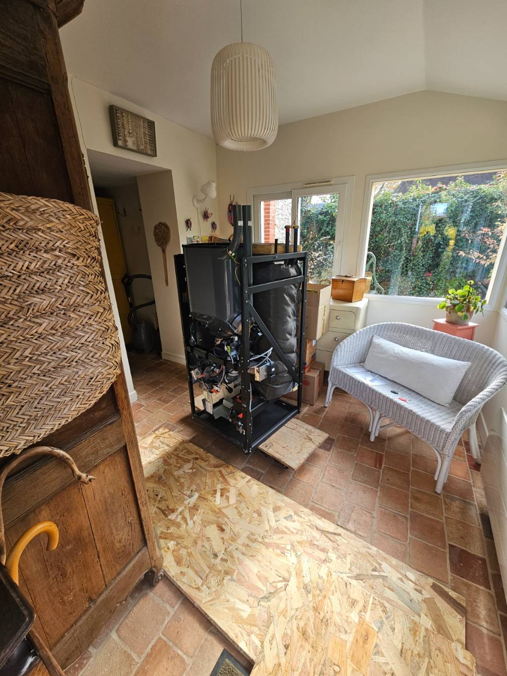 Dépose d'une vieille chaudière fioul GEMINOX avec production d'eau chaude en bain marie.