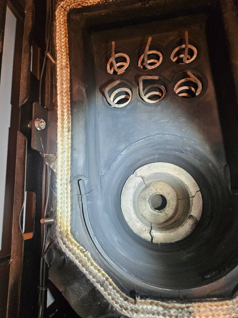 - Dépose de l'assiette de combustion et nettoyage de l'espace cendre